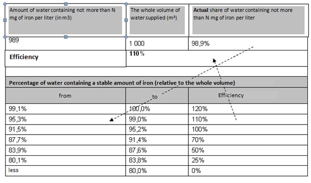 An operator verifies the content of iron in water (the indicators constantly fixes it when it is supplied). Over the whole volume of water supplied, it is easy to know which part corresponded to the given parameters and which part did not.