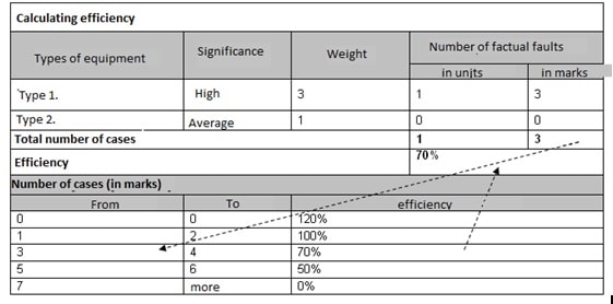 If we would have used 92% and 96% as criteria of efficiency in our calculation for the premium part of the salary, then the employee would not have seen the difference in his salary for a quality and non-quality work.In order to compare, let’s calculate a premium part equaling to USD 266.266 х 92% = USD 245 for the lowest (within possible limits) result.